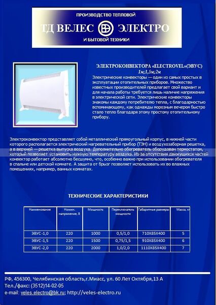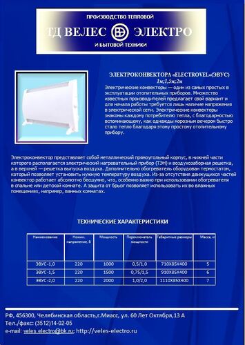 Внимание! Не допускается эксплуатация конвектора при отрицательной температуре воздуха.