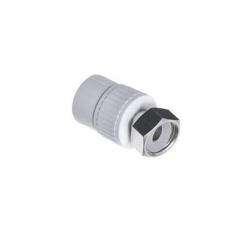 Муфта комбинированная из полипропилена рандом сополимера (тип 3) с накидной гайкой из латуни серии FT052 с одной стороны имеет надвижное соединение для трубы, а с другой стороны фитинга находится внутреннее резьбовое соединение с накидной гайкой с плоским соединением. Накидная гайка позволяет быстро зафиксировать и смонтировать/демонтировать трубопровод и регулирующие элементы водопроводной или отопительной сетей без осевого вращения трубы, что в большинстве случаев крайне необходимо. Соединение с трубой осуществляется методом термофузионной раструбной сварки. Для получения надежного гомогенного соединения трубы и фитинга используйте профессиональный монтажный инструмент марки Fusitek.