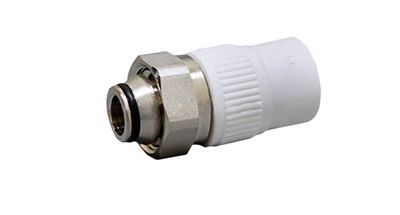 Муфта комбинированная из полипропилена рандом сополимера (тип 3) с накидной гайкой “евроконус” из латуни серии FT053 с одной стороны имеет надвижное соединение для трубы, а с другой стороны фитинга находится внутреннее резьбовое соединение с накидной гайкой с соединением “евроконус”. Накидная гайка позволяет быстро зафиксировать и смонтировать/демонтировать трубопровод и регулирующие элементы водопроводной или отопительной сетей без осевого вращения трубы, что в большинстве случаев крайне необходимо. Соединение с трубой осуществляется методом термофузионной раструбной сварки. Для получения надежного гомогенного соединения трубы и фитинга используйте профессиональный монтажный инструмент марки Fusitek.