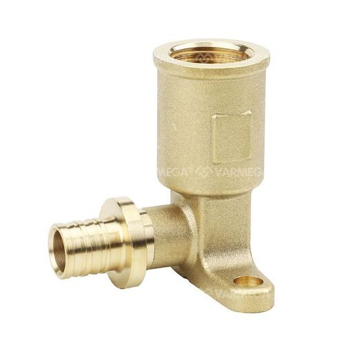 Угольник с внутренней резьбой Varmega Slide-fit с одной стороны имеет надвижное соединение для трубы, а с другой стороны фитинга находится внутреннее резьбовое соединение. Особенностью данного фитинга является наличие настенных креплений, которые позволяют зафиксировать угольник под ровным углом. Этот фитинг, в первую очередь, используется для подключения смесителей, а также других элементов трубопровода. Для получения надежного неразъемного соединения трубы и фитинга потребуются надвижные гильзы соответствующих размеров и специальный монтажный инструмент.