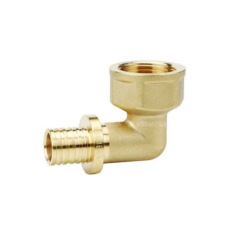 Угольник с внутренней резьбой Varmega Slide-fit с одной стороны имеет надвижное соединение для трубы, а с другой стороны фитинга находится внутреннее резьбовое соединение. Этот фитинг позволяет присоединить другие элементы системы с резьбой (краны, фильтры и т. п.) или подключиться к другому типу трубопровода под углом 90 градусов. Для получения надежного неразъемного соединения трубы и фитинга потребуются надвижные гильзы соответствующих размеров и специальный монтажный инструмент.